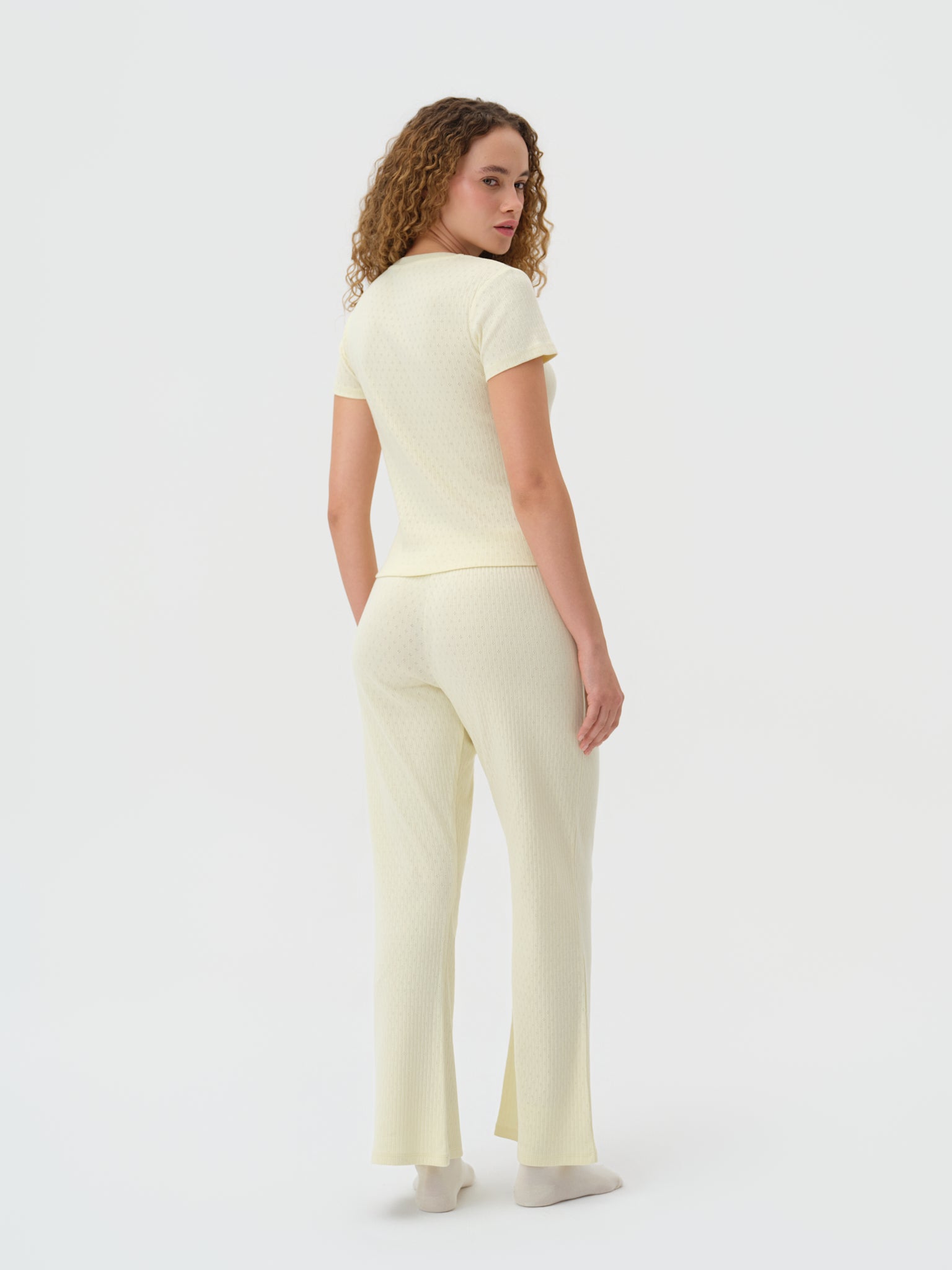 Pamuk ve lyocell içeren kumaşlarımız, nefes alan dokularıyla gün boyu konfor ve serinlik hissi sunar. Bu sayede ürünlerimiz yalnızca evde değil, şehir yaşamında da zarif bir rahatlık sağlar.