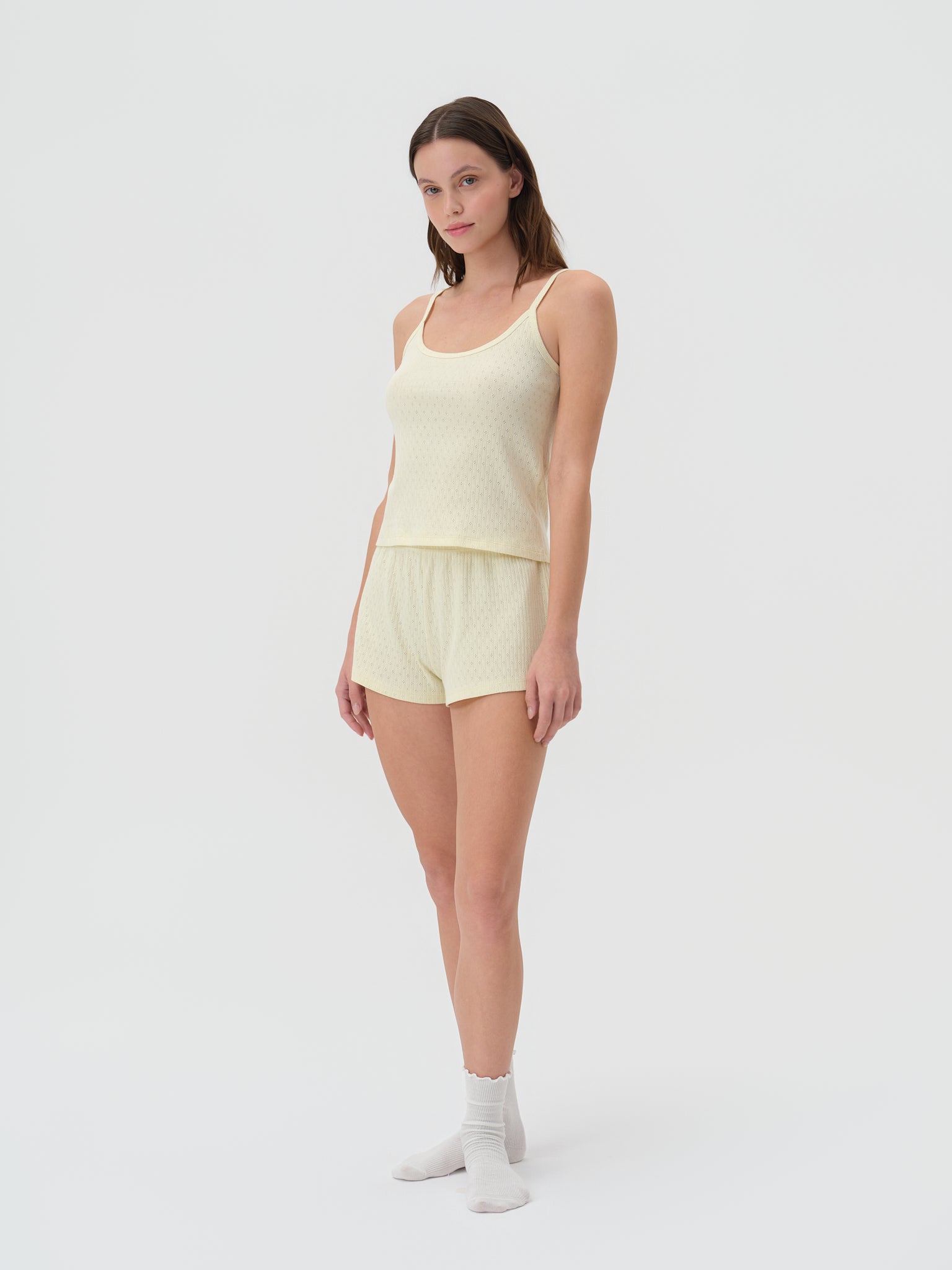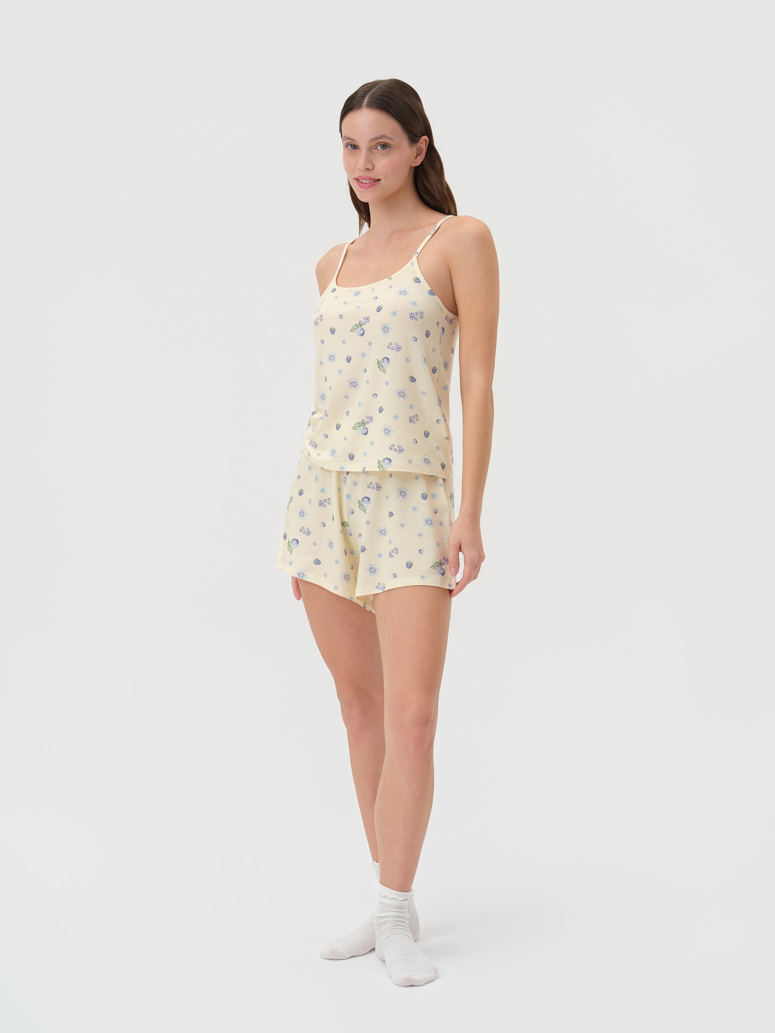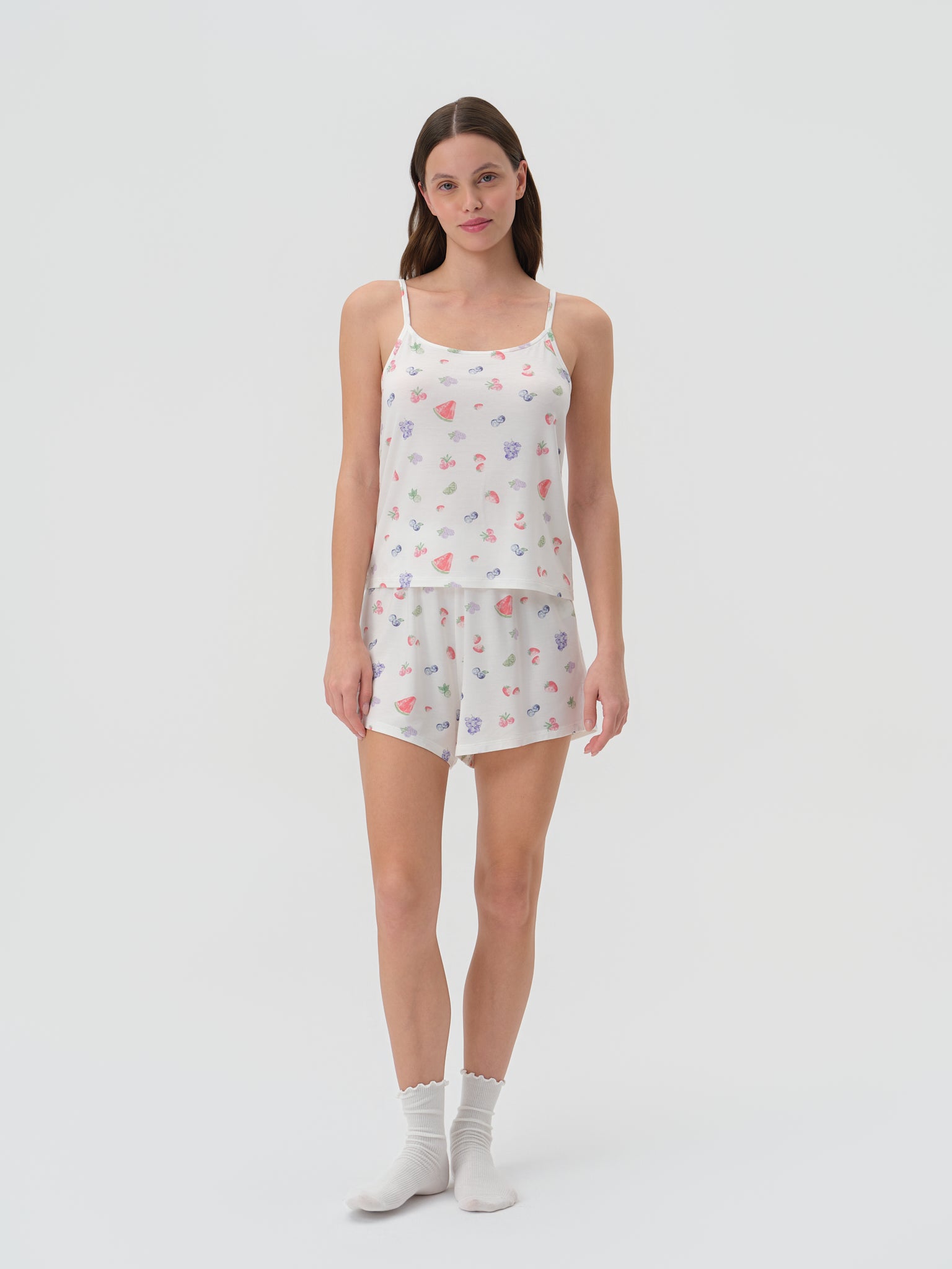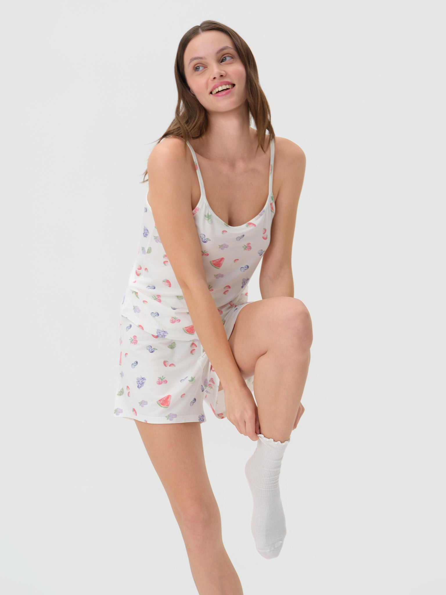Askılı üst ve rahat şort formülü sayesinde hem evde hem dışarıda konforlu bir kullanım sağlar.