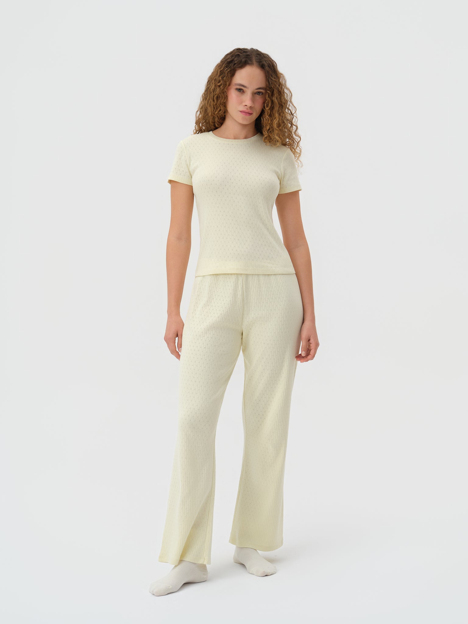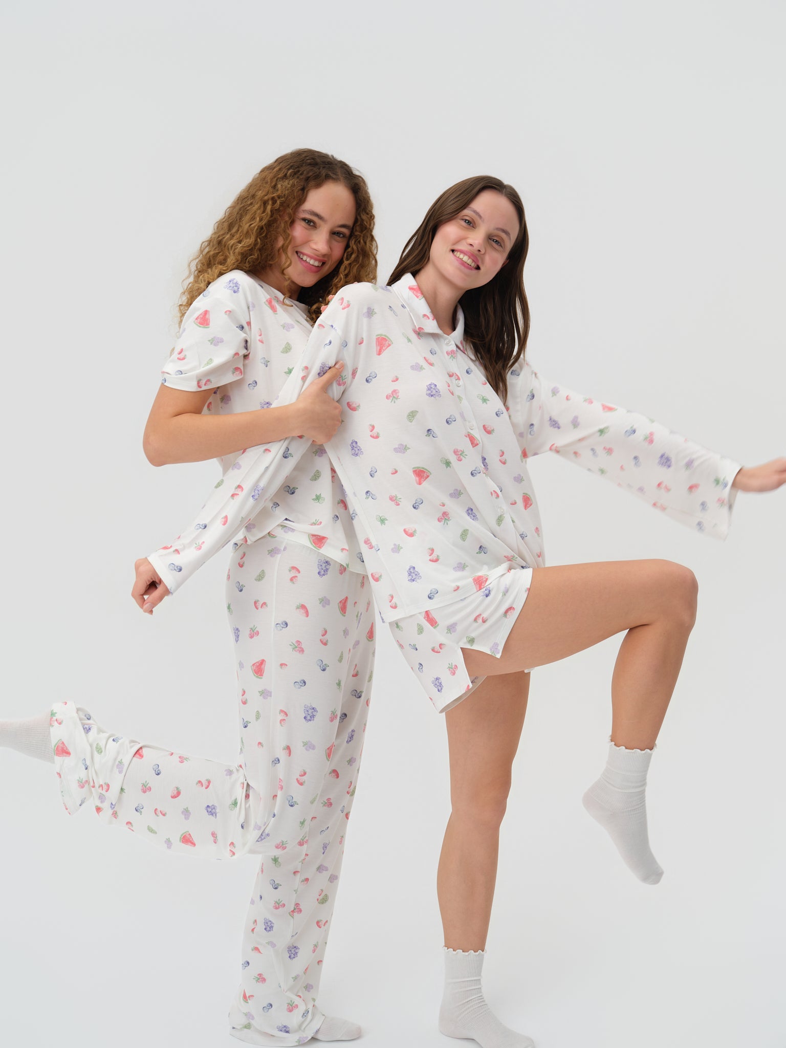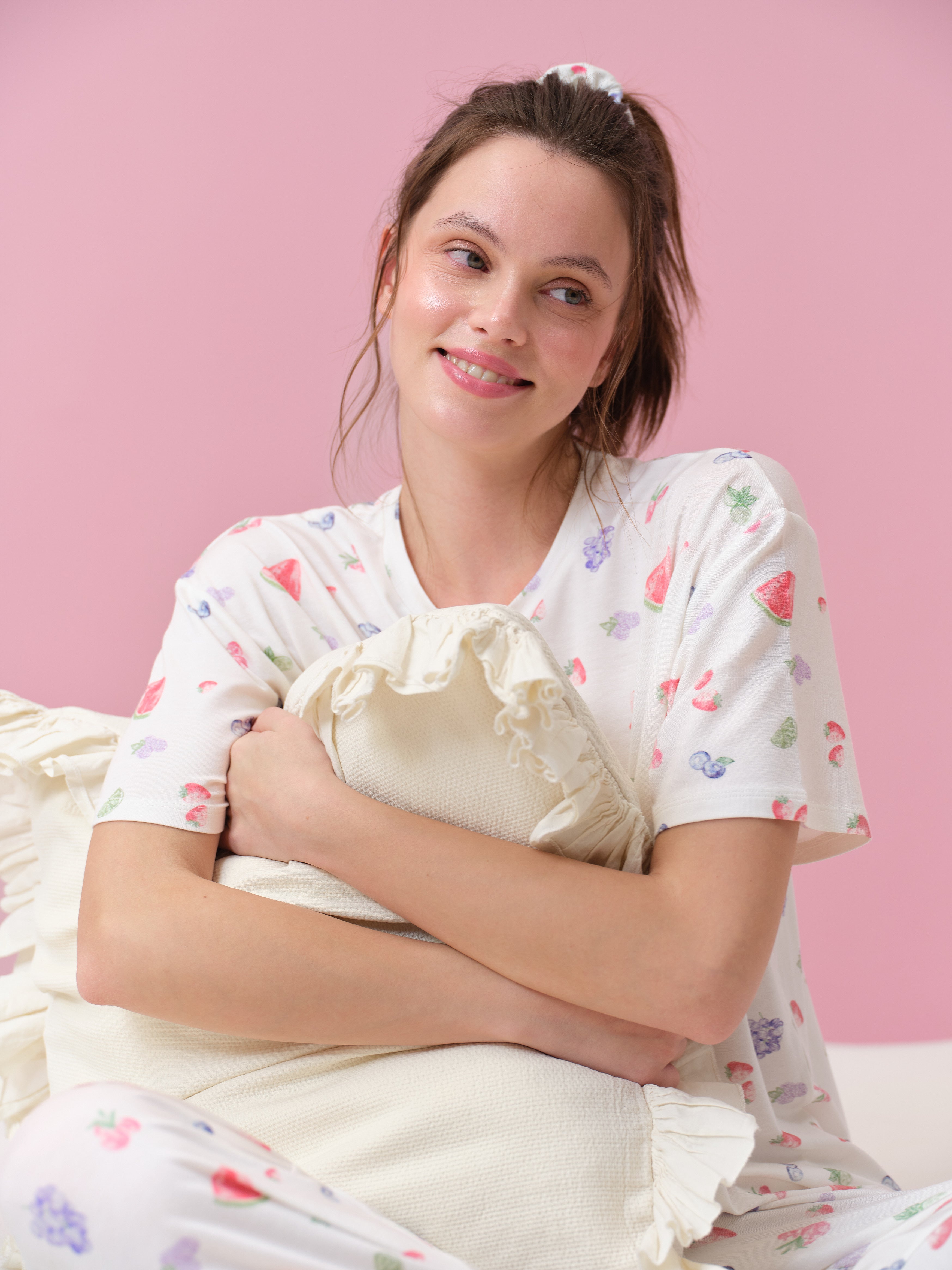 Pamuk ve lyocell içeren kumaşlarımız, nefes alan dokularıyla gün boyu konfor ve serinlik hissi sunar. Bu sayede ürünlerimiz yalnızca evde değil, şehir yaşamında da zarif bir rahatlık sağlar.