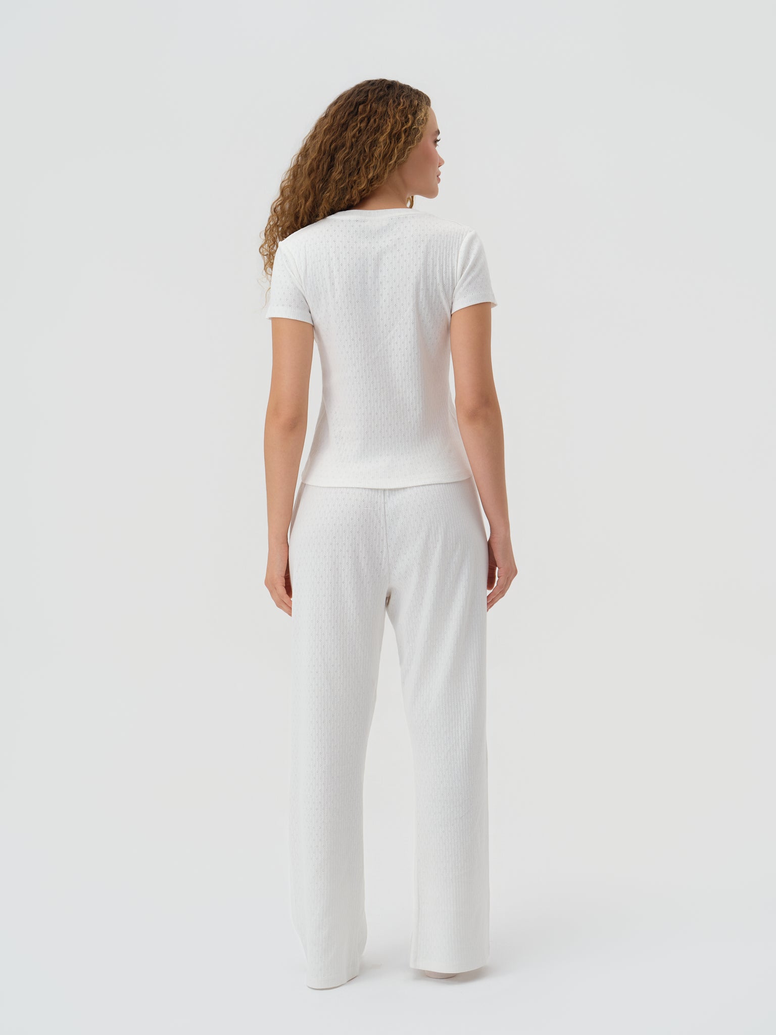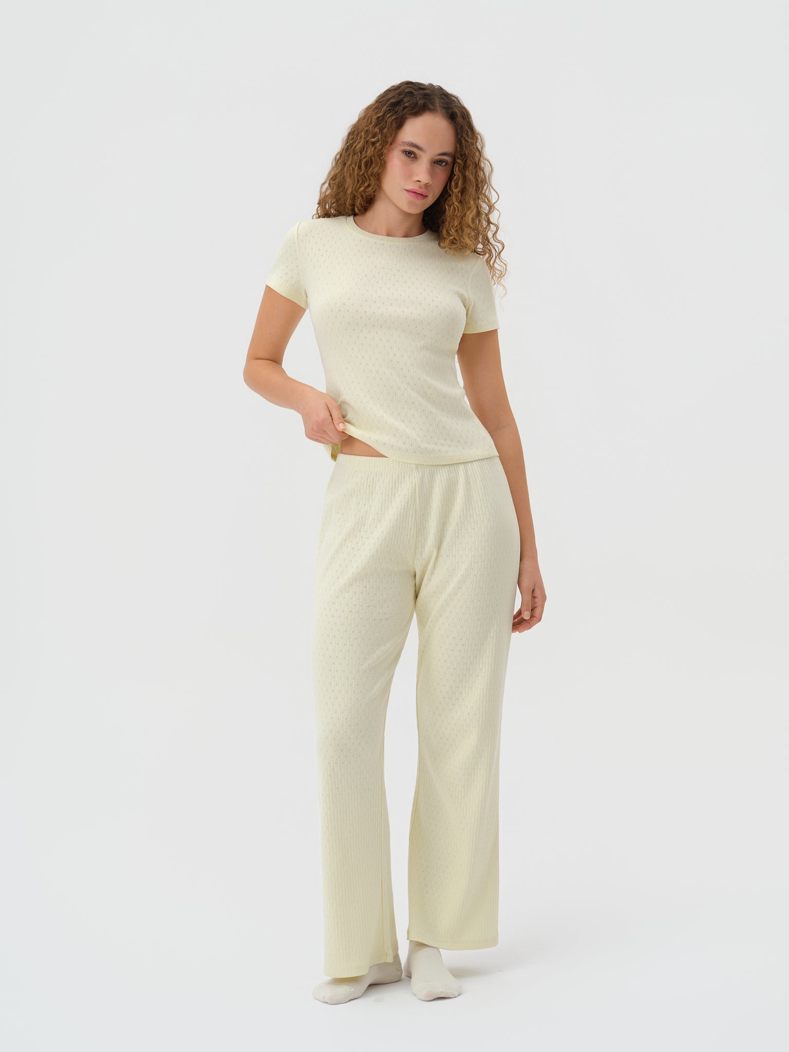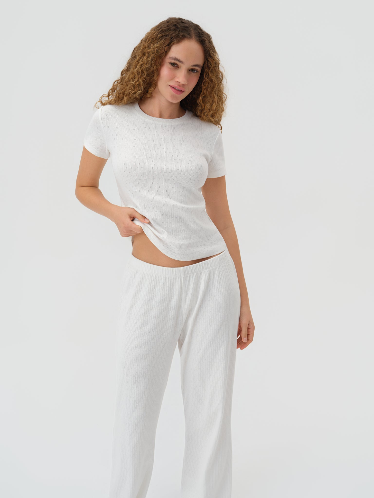 Pamuk ve lyocell içeren kumaşlarımız, nefes alan dokularıyla gün boyu konfor ve serinlik hissi sunar. Bu sayede ürünlerimiz yalnızca evde değil, şehir yaşamında da zarif bir rahatlık sağlar.