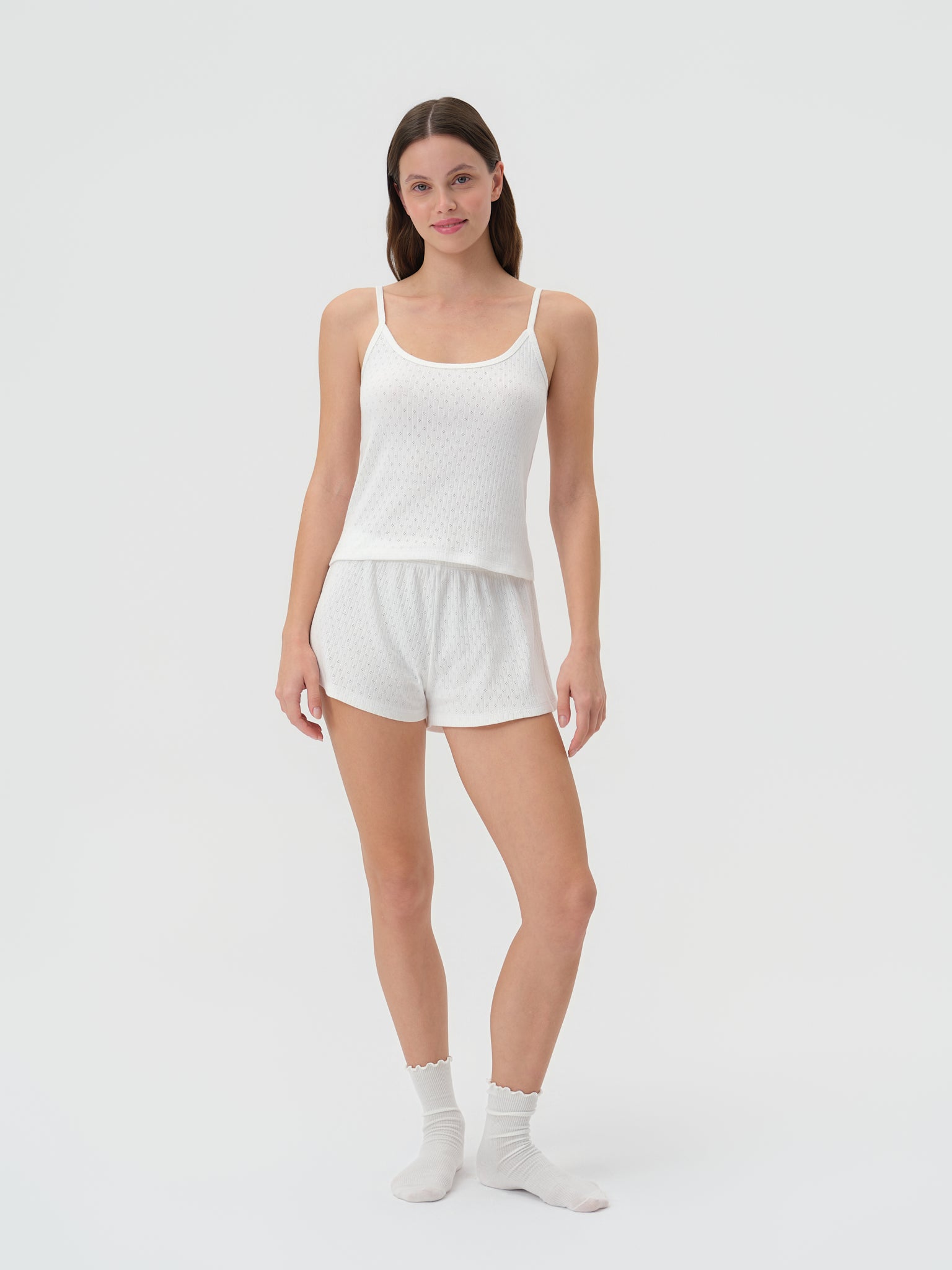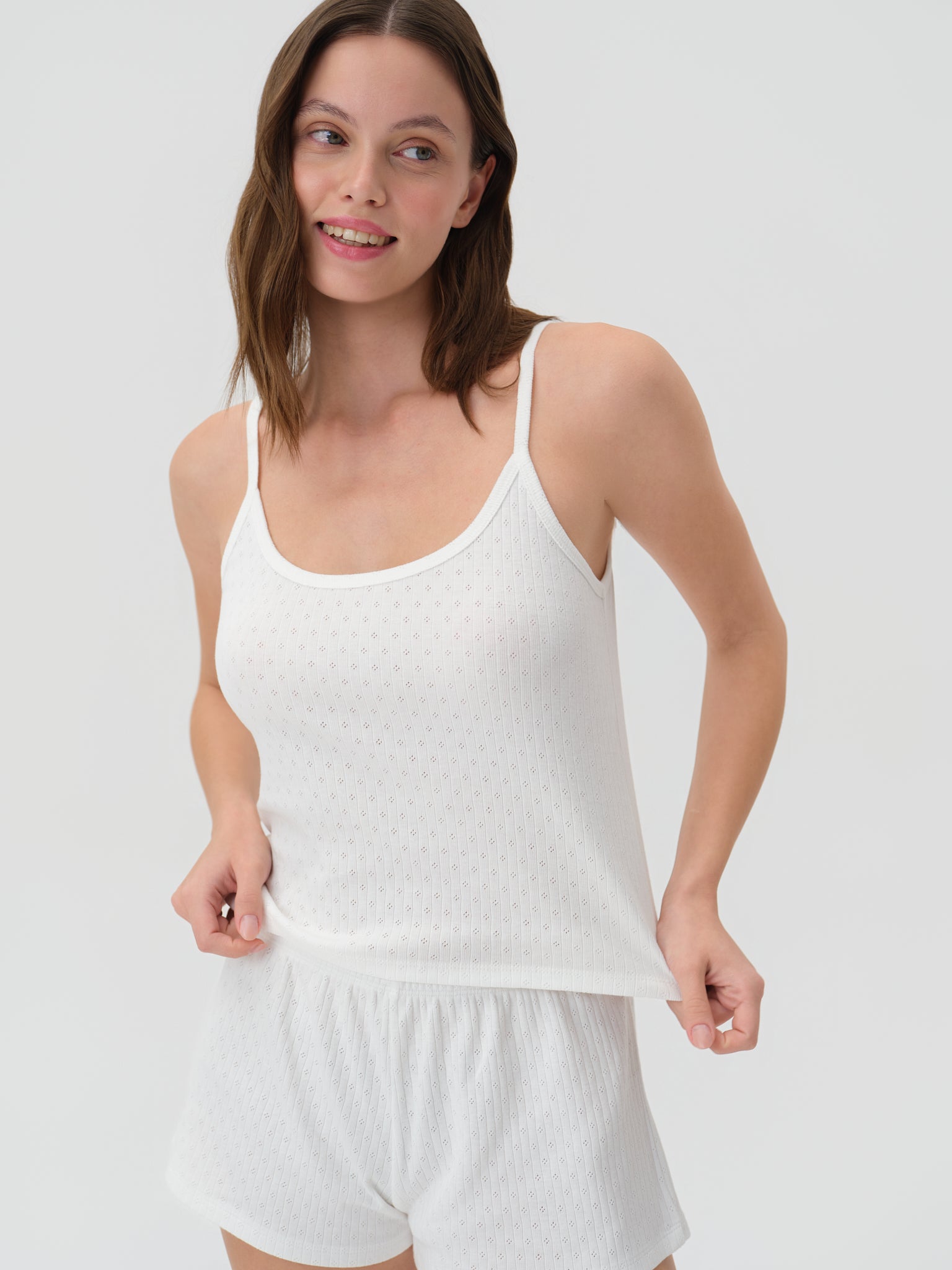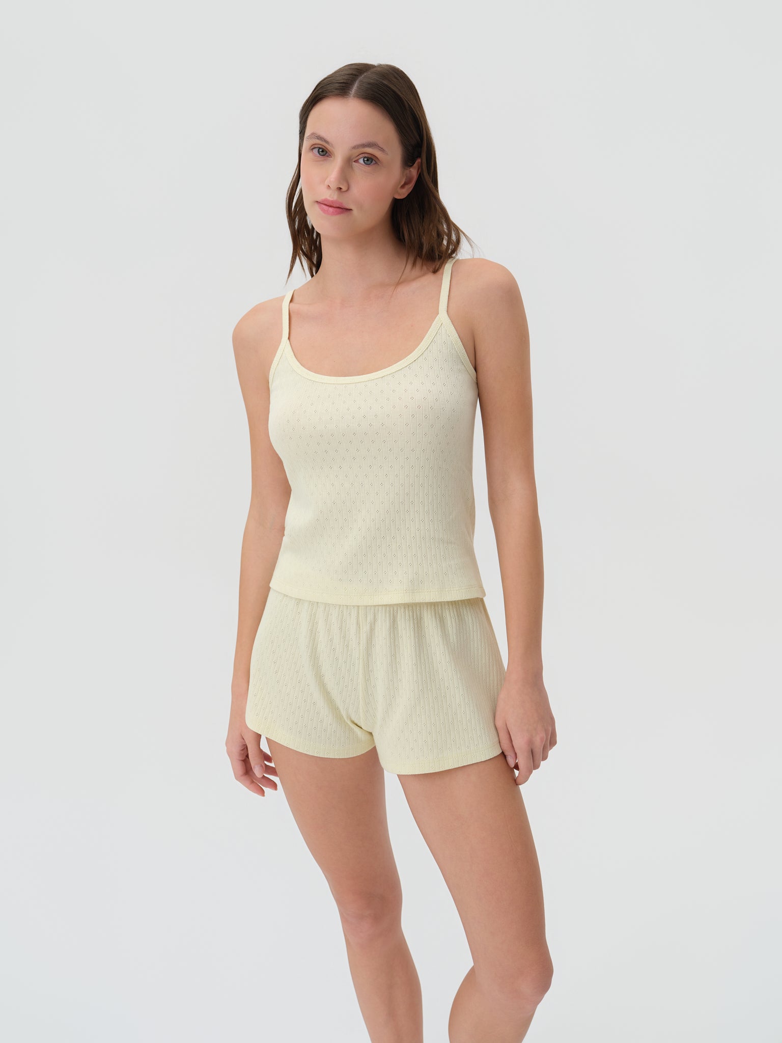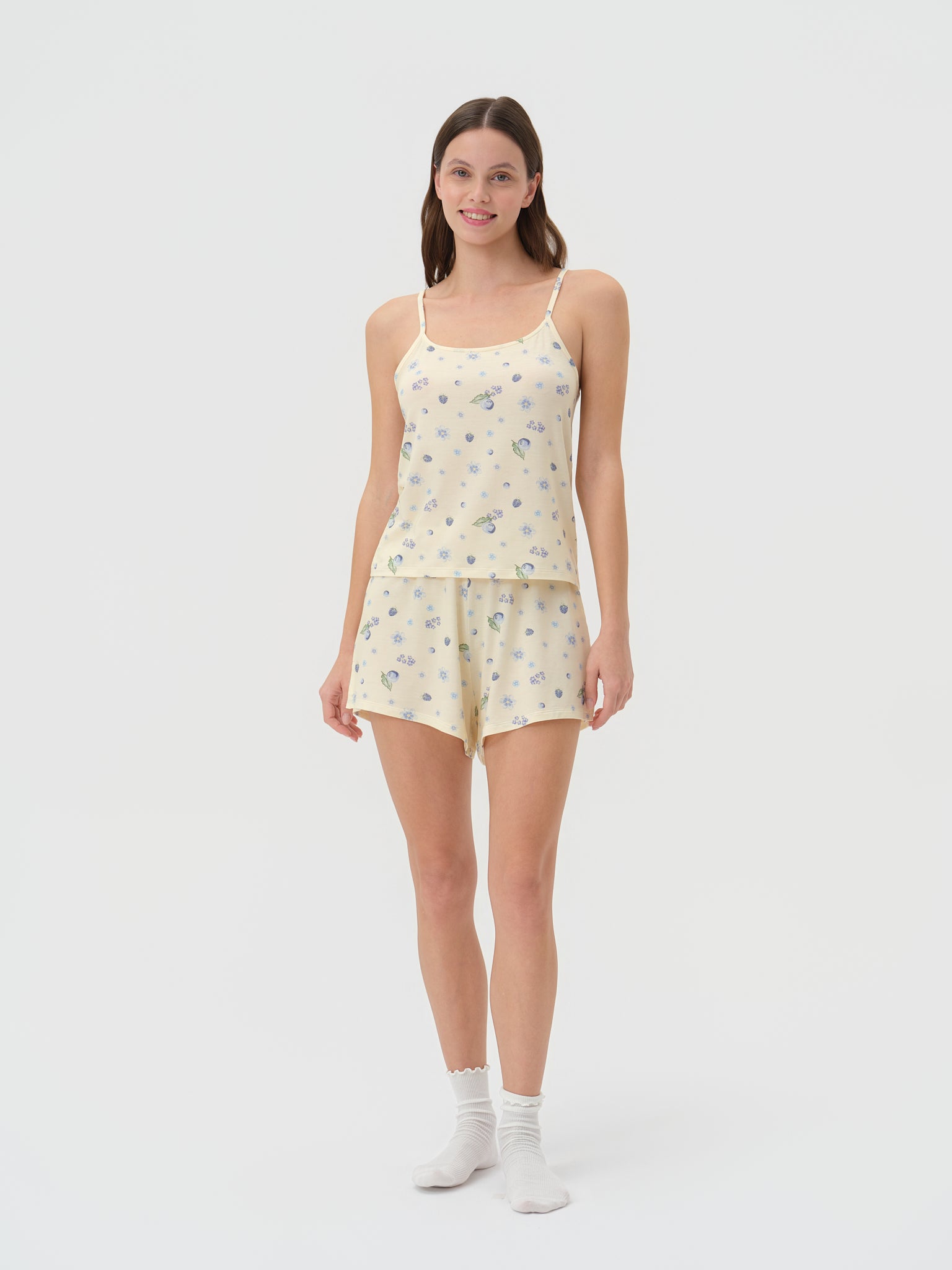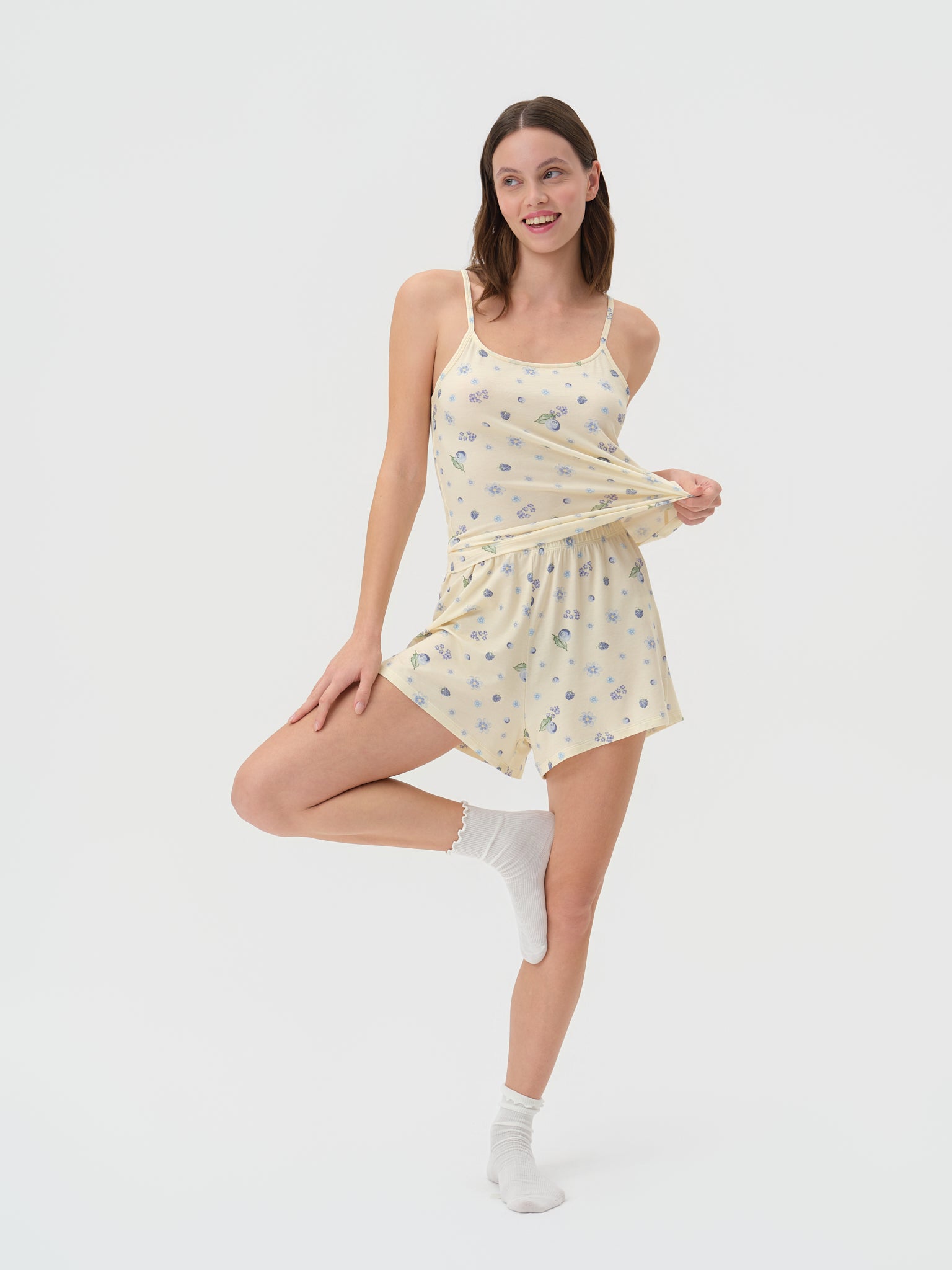 Askılı üst ve rahat şort formülü sayesinde hem evde hem dışarıda konforlu bir kullanım sağlar.