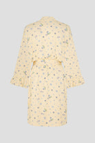 %95 Lyocell, %5 Elastan kumaştan üretilen bu model; hafif, nefes alan ve yumuşak dokusuyla konforlu bir kullanım sunar. Belden bağlamalı formu bedene uyum sağlarken, kol uçlarındaki fırfır detayları tasarıma yumuşak bir hareket kazandırır.
