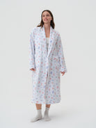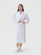 Eden Beyaz Sabahlık, %100 pamuk dokusu sayesinde ciltle uyum içinde, nefes alan bir konfor sunar.