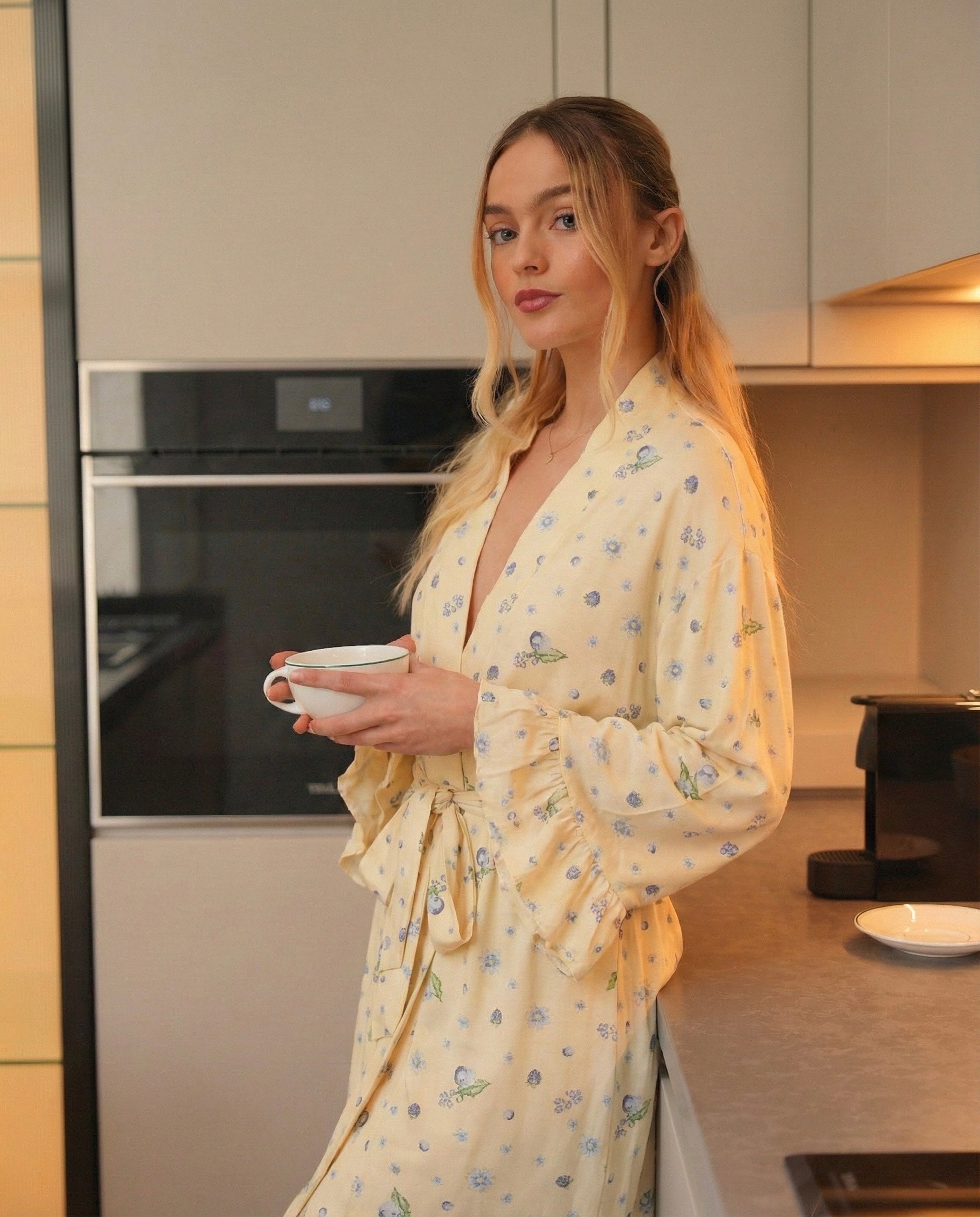 Pamuk ve lyocell içeren kumaşlarımız, nefes alan dokularıyla gün boyu konfor ve serinlik hissi sunar. Bu sayede ürünlerimiz yalnızca evde değil, şehir yaşamında da zarif bir rahatlık sağlar.